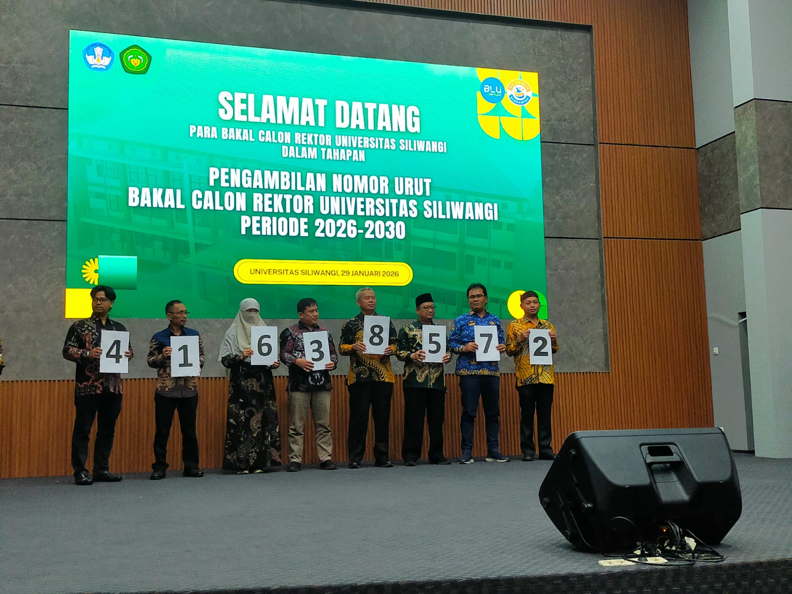 UNIVERSITAS Siliwangi (Unsil) Tasikmalaya, Jawa Barat melaksanakan pemilihan calon Rektor untuk periode 2026-2030. Sebanyak delapan orang bakal calon rektor siap mengikuti pemilihan tersebut. Mereka pun dipesilahkan mengambil nomer urut di…