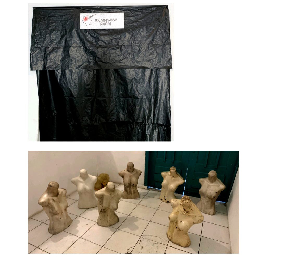 Salah satu karya multi media yang cukup mengundang penasaran penonton ada pada ruang dua pintu berukuran 2,5 meter persegi, di beri judul Brainwash Room. Beberapa manekin ditata tanpa kepala dan ada video yang mengilustrasikan orang sedang membetulkan payung yang rusak.
