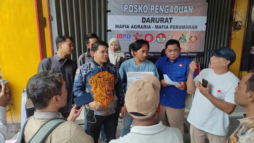 SEJUMLAH Lembaga Swadaya Masyarakat (LSM) dan bantuan hukum di Sidoarjo membuka Posko Pengaduan Darurat Mafia Agraria dan Mafia Perumahan, Jumat (23/1).