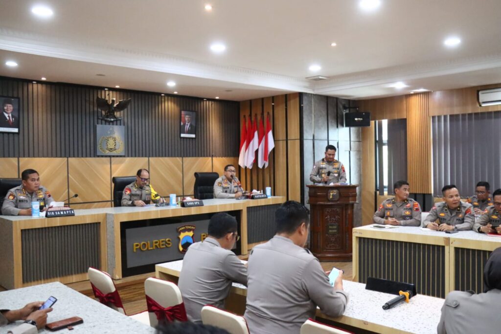 Rapat koordinasi teknis di Aula Rupatama Tantya Sudhirajati Polres Brebes, Jumat (27/2). (Dok.ist)