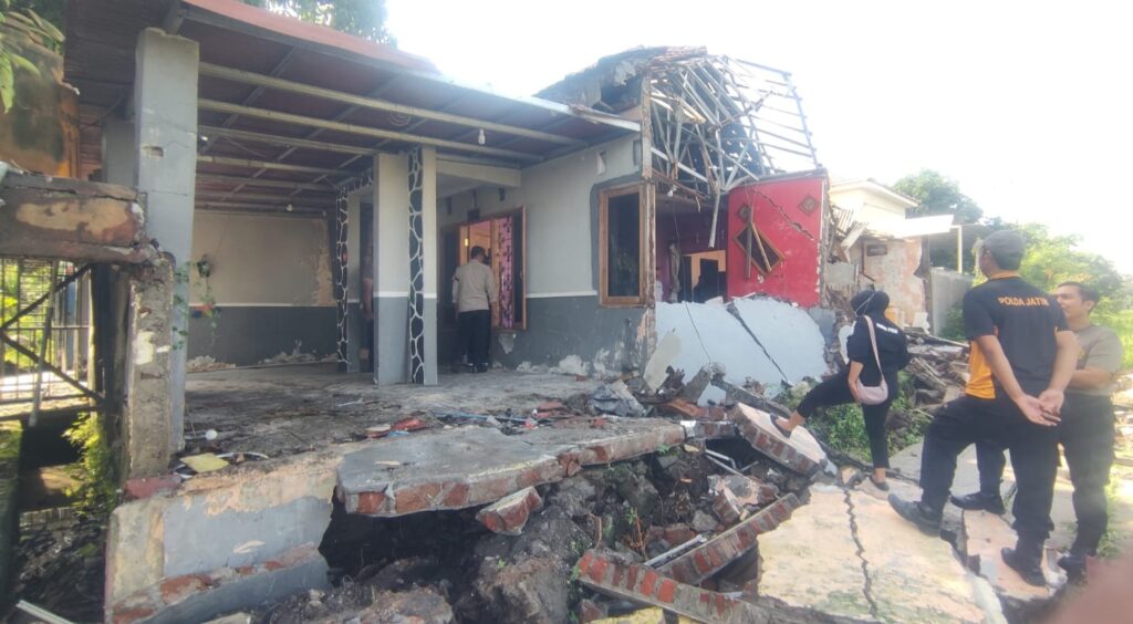 Rumah roboh adalah milik Fahrurradji, 65 berada di blok D2 Nomor 17. Rumah awalnya roboh pada bagian tembok kiri dan diikuti ambruknya separoh bagian atas rumah. Tembok sisi luar perumahan juga ikut roboh setelah tertimpa reruntuhan.