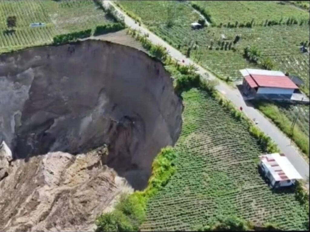 Lubang besar di Kecamatan Ketol, Aceh Tengah, Aceh yang terus meluas hingga mencapai luas 27 ribu meter persegi. (Dok.IG)