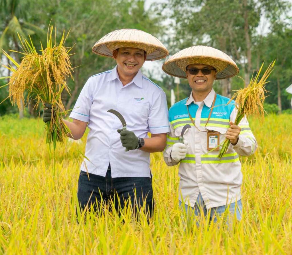 Seremoni panen padi Gamagora kali ini dihadiri Direktur Operasional PT Adaro Indonesia Wahyu Sulistyo, Kepala Teknik Tambang Deny Widihatmoko, Eksternal Relation Division Head Rinaldo Kurniawan, Kepala Deputi Division Head HSE Didik Triwibowo, Ketua Yayasan Amanah Bangun Negeri (YABN), Zuraida Murdia Hamdie dan Sekretaris YABN, Diah Restu Lestari. (Agt/N-01)
