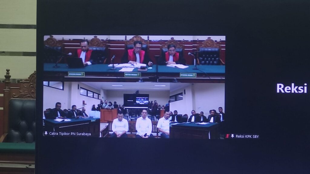 PENGADILAN Tindak Pidana Korupsi (Tipikor) Surabaya menggelar sidang perdana kasus dugaan korupsi yang menjerat Bupati Ponorogo nonaktif Sugiri Sancoko, Jumat (10/4).