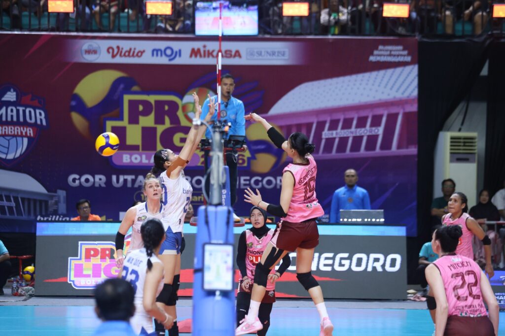 PELUANG tim putri Bandung bjb Tandamata untuk maju ke final four semakin berat seusai dikalahkan Gresik Phonska Plus Pupuk Indonesia 0-3 (20-25, 24-26, 16-25) dalam lanjutan putaran kedua Proliga 2026 di GOR Utama Bojonegoro, Minggu (15/2/2026) malam.