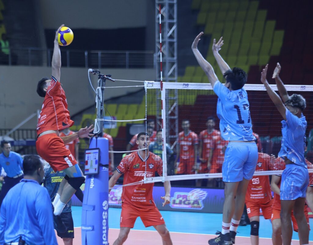 TIM voli putra Surabaya Samator berhasil mengamankan poin penuh setelah mengandaskan perlawanan Jakarta Garuda Jaya 3-1 (25-27, 25-21, 25-22, 25-21) dalam lanjutan Final Four Proliga 2026 seri ketiga putaran kedua di GOR Jatidiri Semarang, Sabtu (18/4/2026).